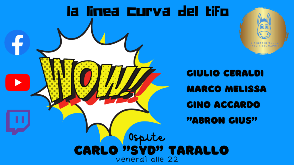Potrete seguire il programma, in diretta e “on demand”, sui canali Facebook (clicca qui), YouTube (clicca qui) e Twitch (clicca qui e cerca ciucciomaglianapoli) de Il Ciuccio sulla Maglia del Napoli.
