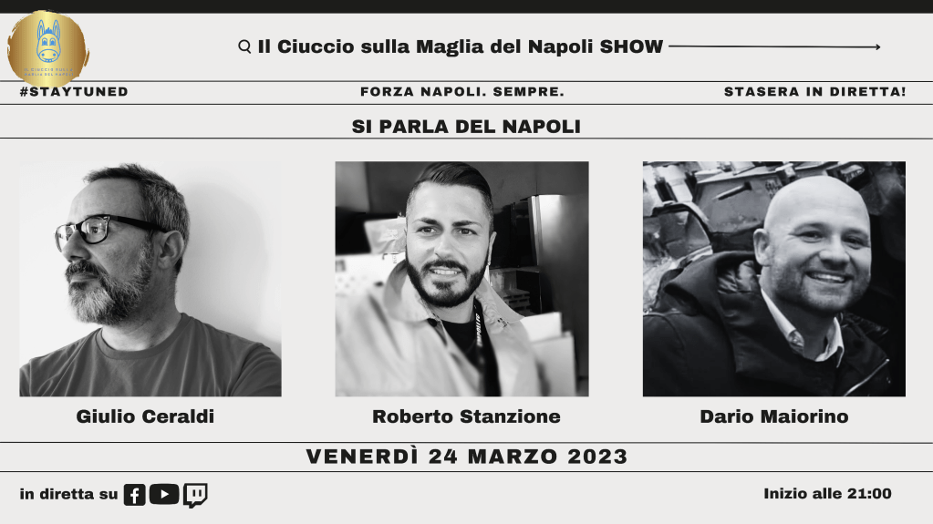Andremo in onda (disponibile anche “in demand”, a fine trasmissione) sui canali Facebook, YouTube e Twitch (cerca ciucciomaglianapoli) del blog.