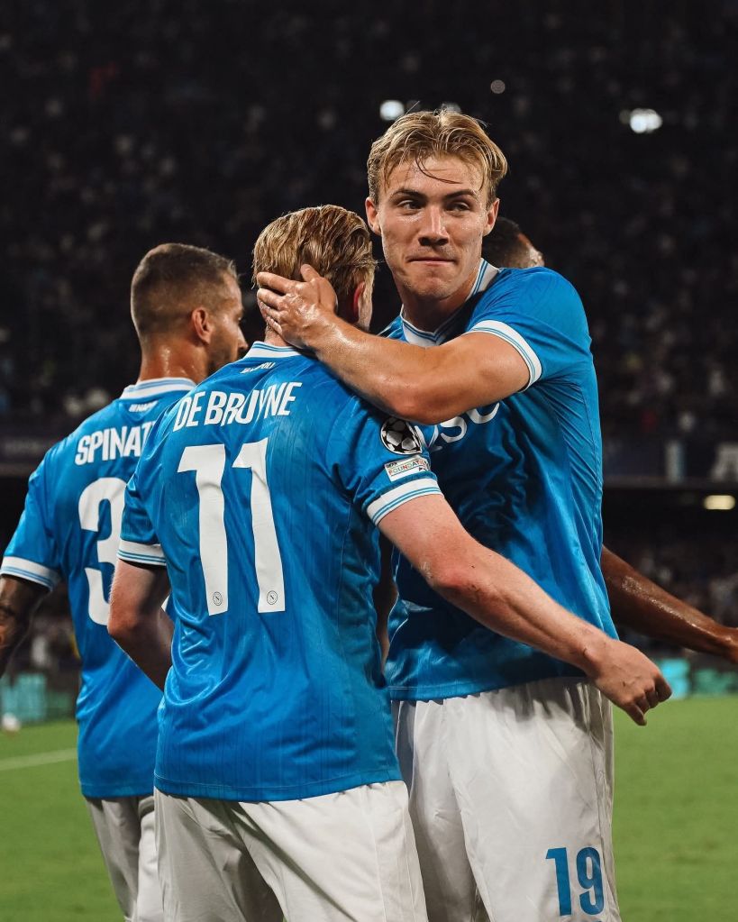 È proprio sull’asse belga-danese che il Napoli sblocca il risultato al 36° minuto: una ripartenza fulminea, orchestrata magistralmente da De Bruyne che lancia Højlund in profondità. L’attaccante danese non sbaglia e batte il portiere portoghese per l’1-0.
