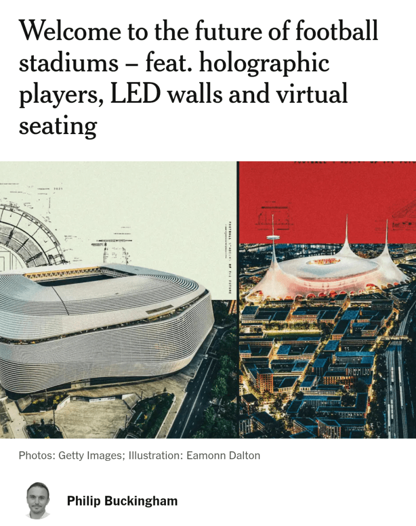 In un recente e affascinante articolo per The Athletic, il corrispondente Philip Buckingham ci guida attraverso i cantieri (reali e concettuali) che cambieranno per sempre il nostro modo di vivere lo sport.