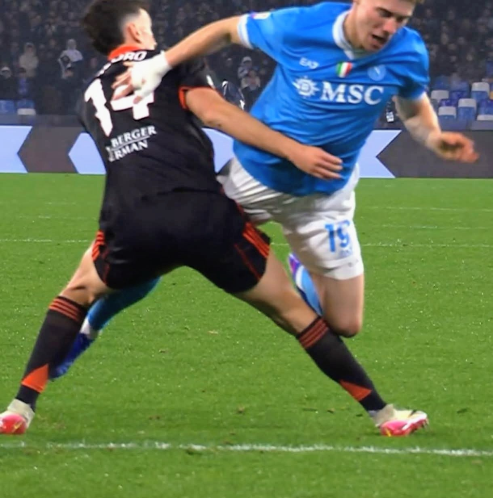 Il punto di rottura della sfida è racchiuso in un nome: Ramon. Il difensore del Como è stato il protagonista di una gestione disciplinare che la critica ha unanimemente bocciato con un 4 in pagella. Il primo episodio avviene al 44’ del primo tempo: Højlund viene lanciato a rete, Ramon lo tocca sul piede d’appoggio proprio mentre l’attaccante sta entrando in area. Per molti osservatori si tratta di DOGSO (Denial of an Obvious Goal-Scoring Opportunity), ovvero rosso diretto. Manganiello opta per il giallo, e al VAR Gariglio decide stranamente di non intervenire per una on-field review .